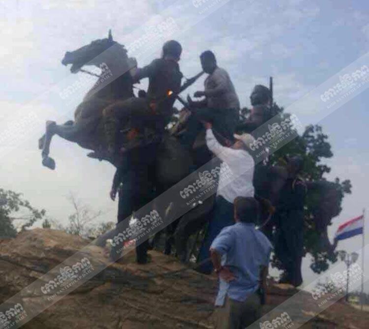 អាជ្ញាធរខណ្ឌដូនពេញបានភ្ជាប់ដាវជាមួយនឹងរូបសំណាកតេជោមាសវិញហើយ បន្ទាប់ពីដាច់ធ្លាក់កាលពីពេលកន្លងមក 11 ឆ្នាំ មុន