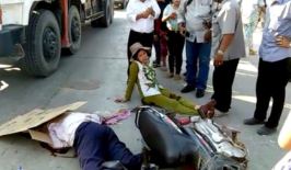 មើលចុះ! ឡានដឹកដីវ៉ាទាក់ដៃចង្កូតម៉ូតូគេ