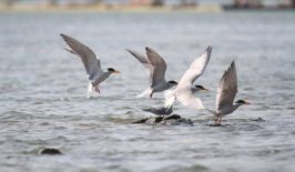 សត្វរំពេទន្លេប្រើថ្មប៉ប្រះទឹកជាទ្រនំ ដើម្បីចាប់ត្រី ខណៈសត្វរំពេខ្លះទៀតកំពុងហើរក្រឡឹងចុះឡើងឆ្នេរ 4 ឆ្នាំ មុន