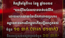 ទាហានថៃបានបា.ញ់សម្លាប់ជនស៊ីវិលកម្ពុជាបាត់បង់ជីវិតកើនឡើងរហូតដល់ចំនួន១០នាក់ (ទារក១នាក់) និងរងរបួសជនស្លូតត្រង់ចំនួន៦០នាក់ 3 ខែ មុន