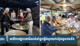 អាជីវករផ្សារពោធិ៍សាត់មួយក្រុមនាំគ្នាធ្វើអំបុកបាក់យ៉ុងជូនដល់កងទ័ព ក្រោយពីជួយឧបត្ថម្ភគ្រឿងឧបភោគបរិភោគដល់រដ្ឋបាលខេត្ត 3 ខែ មុន