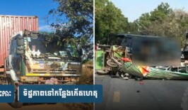 ម៉ូតូសណ្ដោងរ៉ឺម៉ក បុ.កជាមួយឡានទួរីស ខ្ទាតមនុស្សចូលក្រោមកុងតឺន័រ ស្លា.ប់ម្នាក់ របួ.សធ្ងន់ម្នាក់ 2 ខែ មុន