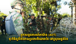 កម្ពុជាដឹកនាំក្រុមអ្នកសង្កេតការណ៍អាស៊ាន (AOT) ចុះពិនិត្យទីតាំងវា.យប្រហារពីយោធាថៃ នៅស្រុកអន្លង់វែង 2 ខែ មុន