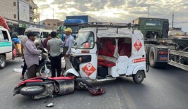 ម៉ូតូហុងដាស្កូបពី ពន្លះម៉ូតូកង់បី កំពុងបើកឆ្លងផ្លូវជាតិលេខ៤ របួសធ្ងន់ម្នាក់ និងស្រាល២នាក់ 10 ម៉ោង មុន
