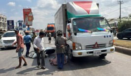 ក្មេងសិស្សសាលាម្នាក់ ជិះម៉ូតូទាក់ដៃចង្កូតម៉ូតូ១គ្រឿងទៀត ដួលត្រូវរថយន្តឃ្លុបទៅពីក្រោយកិនរបួសធ្ងន់ 5 ម៉ោង មុន