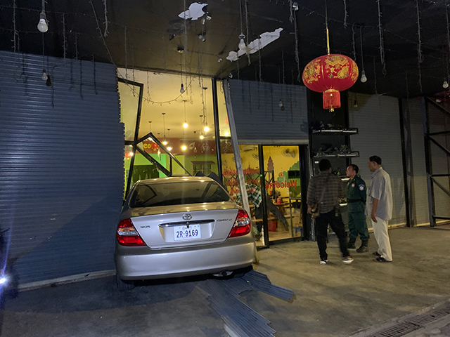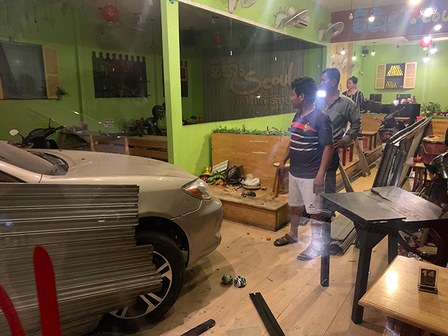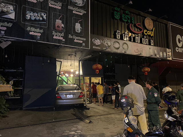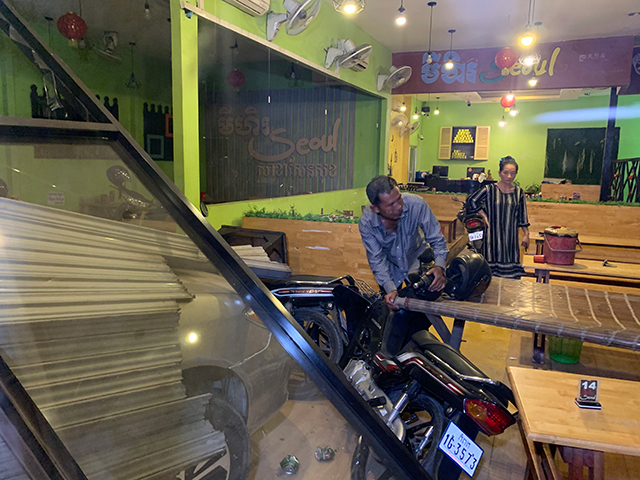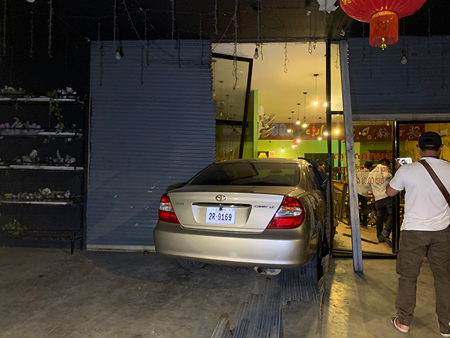 រាជធានីភ្នំពេញ ៖ សន្តិសុខភោជនីយដ្ឋាន ព្រីនម៉ាទីន ម្នាក់ បានបើករថយន្តភ្ញៀវយកទៅចតទៅមុខហាងមីហិរ ដែលនៅទល់មុខភោជនីយដ្ឋានខ្លួន ស្រាប់តែជ្រុលបុកចូលក្នុងហាងធ្លុះទ្វារបែកកញ្ចក់ រាយប៉ាយពេញហាង និងបន្តទៅបុកម៉ូតូចំនួន2គ្រឿងទៀតនៅខាងក្នុងហាង បណ្តាលឱ្យរងការខូចខាតយ៉ាងដំណំ កាលពីវេលាម៉ោង11យប់ថ្ងៃទី11 ខែកុម្ភៈ ឆ្នាំ2021 នៅចំណុចហាងមីហិរមួយកន្លែង តាមបណ្ដោយផ្លូវលេខ598 កែងនឹងផ្លូវ1986 សង្កាត់ភ្នំពេញថ្មី ខណ្ឌសែនសុខ រាជធានីភ្នំពេញ ។