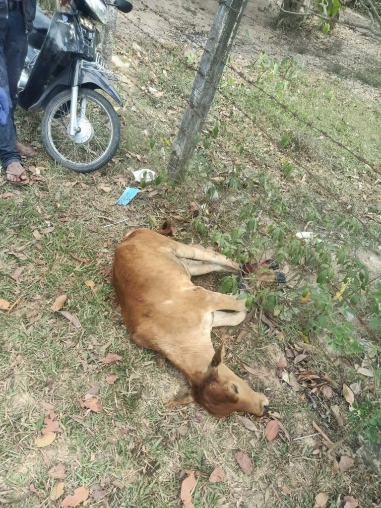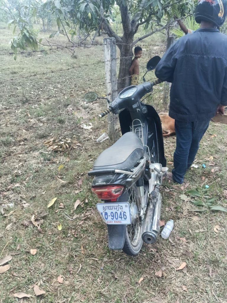 ចំពោះមូលហេតុ ម៉ូតូវ៉េវបត់ឆ្វេង ។ ករណីទី៣ កើតឡើង នៅថ្ងៃទី១២ ខែកុម្ភៈ ឆ្នាំ២០២១ វេលាម៉ោង១១និង០០នាទីព្រឹក នៅលើផ្លូវជាតិលេខ៣១៧ ស្ថិតក្នុងភូមិខ្ជាយឃុំរមាំងថ្កោល ស្រុកស្វាយទាប ដោយបុរស់ម្នាក់បើកម៉ូតូបុកគោមួយក្បាលងាប់នៅនិងកន្លែង ជនរងគ្រោះបើកម៉ូតូម៉ាក់ហុងដាសេរី២០២០ ពណ៍ខ្មៅពាក់ស្លាកលេខស្វាយរៀង ១Q.៩០៤៦ បើកបរដោយឈ្មោះ ខុន ប៊ុនធឿន ភេទប្រុស អាយុ៣០ឆ្នាំ មុខរបរកម្មកររោងចក្រ រស់នៅភូមិទាហ៊ានក្រោម សង្កាត់ស្វាយតឿ ក្រុងស្វាយរៀង ខេត្តស្វាយរៀង (រងរបួសធ្ងន់ពាក់មួកសុវត្ថិភាព) អ្នករងរបួសសម្រាកព្យាបាលនៅផ្ទះពេទ្យឯកជន ។ មូលហេតុ គោដើរឆ្លងផ្លូវ ។ មធ្យោបាយយកមករក្សាទុកនៅប៉ុស្តិ៍រដ្ឋបាលរមាំងថ្កោល ៕