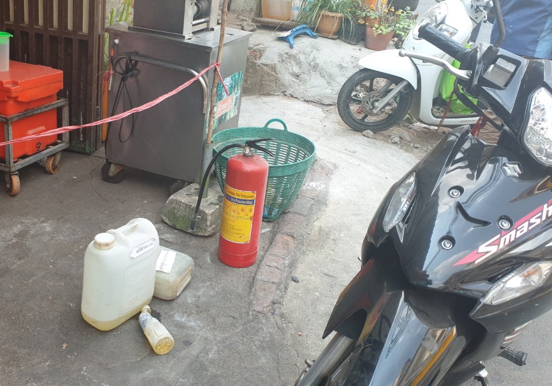 ទោះបីជាយ៉ាងណាភ្លើងបានឆាបឆេះរាលដាលឡើយ ត្រូវបានក្រុមបុគ្គលិកនាំគ្នាជួយពន្លត់ទាន់ បុរសរងគ្រោះពុំស្គាល់អត្តសញ្ញាណឡើយមានអាយុ ប្រមាណជាង៣០ឆ្នាំ ជាជាងម៉ូតូនៅក្រុមហ៊ុន ណារីតា វេស្ប៉ាខាងលើ ត្រូវភ្លើងឆេះខោអស់រងរបួសធ្ងន់ធ្ងរ ។