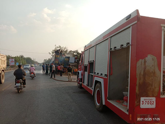 ខេត្តបន្ទាយមានជ័យ ៖ រថយន្តធុនធំមួយគ្រឿងមានដឹកផ្លែស្វាយទម្ងន់២៥តោន ខណៈកំពុងបើកធ្វើដំណើរតាមផ្លូវសុខៗ ស្រាប់តែមានអគ្គិភ័យឆេះចេញពីខេងដាក់ផ្លែស្វាយ បណ្តាលឱ្យឆេះផ្លែស្វាយខូចអស់២០ភាគរយ តែមិនបណ្តាលឱ្យឆាបឆេះរថយន្តនោះទេ ។