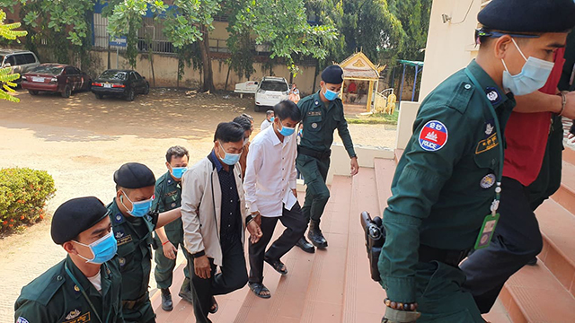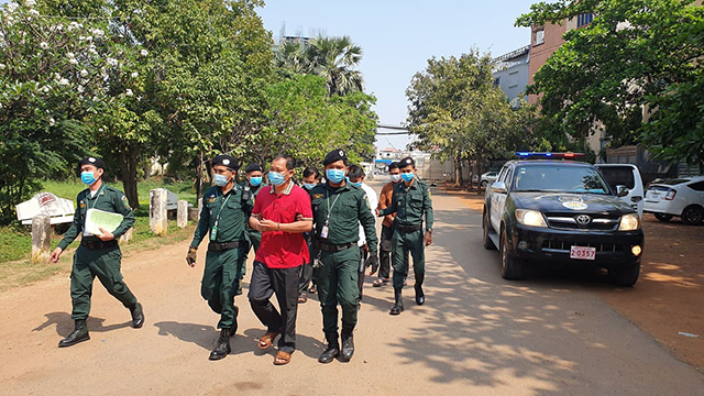 ខេត្តកណ្ដាល ៖ ជនសង្ស័យ៤នាក់ ត្រូវបានលោក រស់ ផុនច័ន្ទនិមល ចៅក្រមស៊ើបសួរសាលាដំបូងខេត្តកណ្ដាល បានសម្រចចេញដីកាឃុំខ្លួន ពីបទ «ក្លែងបន្លំឯកសារសាធារណ: ប្រើប្រាស់ឯកសារសាធារណៈក្លែង (ក្លែងលិខិត ក្លែងហត្ថលេខា និងត្រារបស់នាយករដ្ឋមន្ត្រី) ប្រើប្រាស់ឯកសណ្ឋានជាអាទិ៍ ដែលមានភាពប្រហាក់ប្រហែលគ្នានឹងយោធា និងកាន់កាប់អាវុធដោយគ្មានការអនុញ្ញាត និងសមគំនិតក្នុងអំពើប្រើប្រាស់ឯកសារធារណៈក្លែង។ តាមមាត្រា៤៩០ ,៦១៦ ,៦២៩ និងមាត្រា៦៣០ នៃក្រមព្រហ្មទណ្ឌ ។ ដែលប្រព្រឹត្តនៅភូមិស្លែងដីដុះ ឃុំព្រែកតាទែន ស្រុកពញ្ញាឮ ខេត្តកណ្តាល កាលពីថ្ងៃទី២៨ ខែមករា ឆ្នាំ២០២១ ។