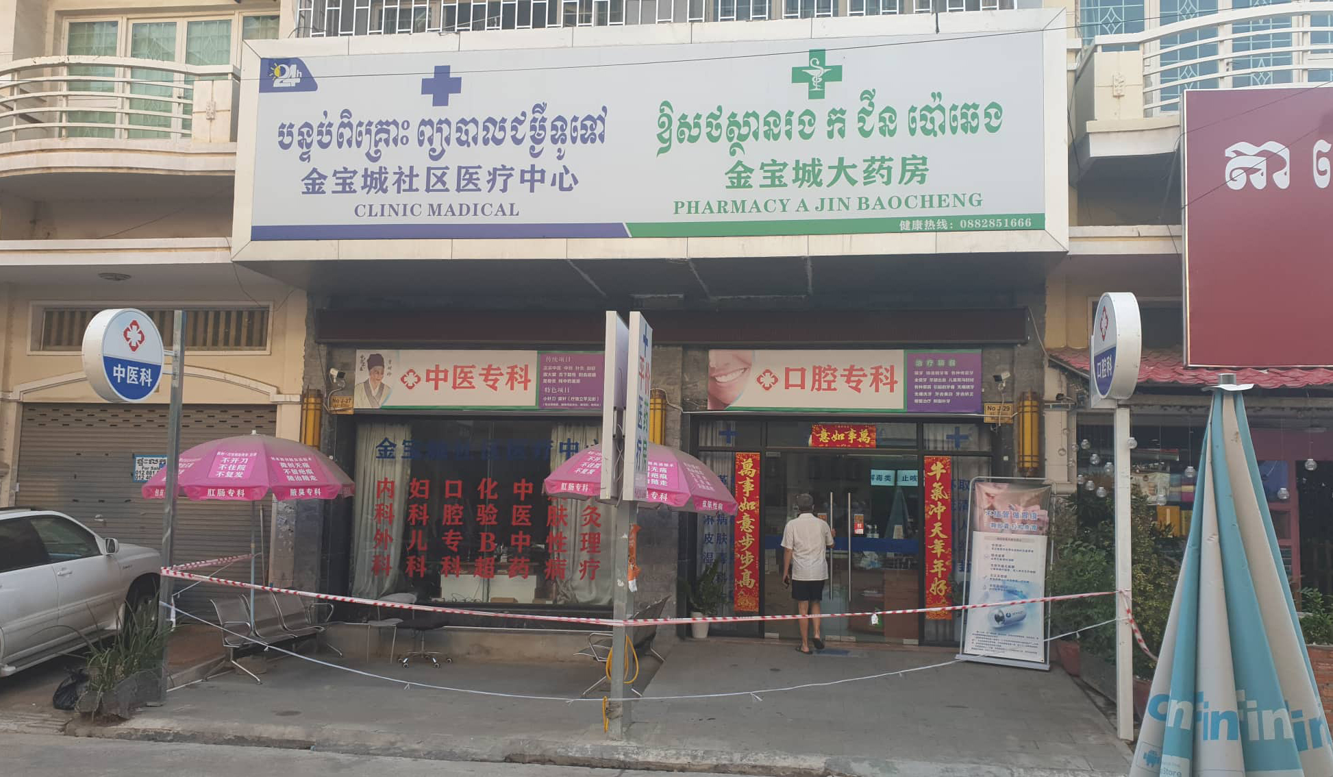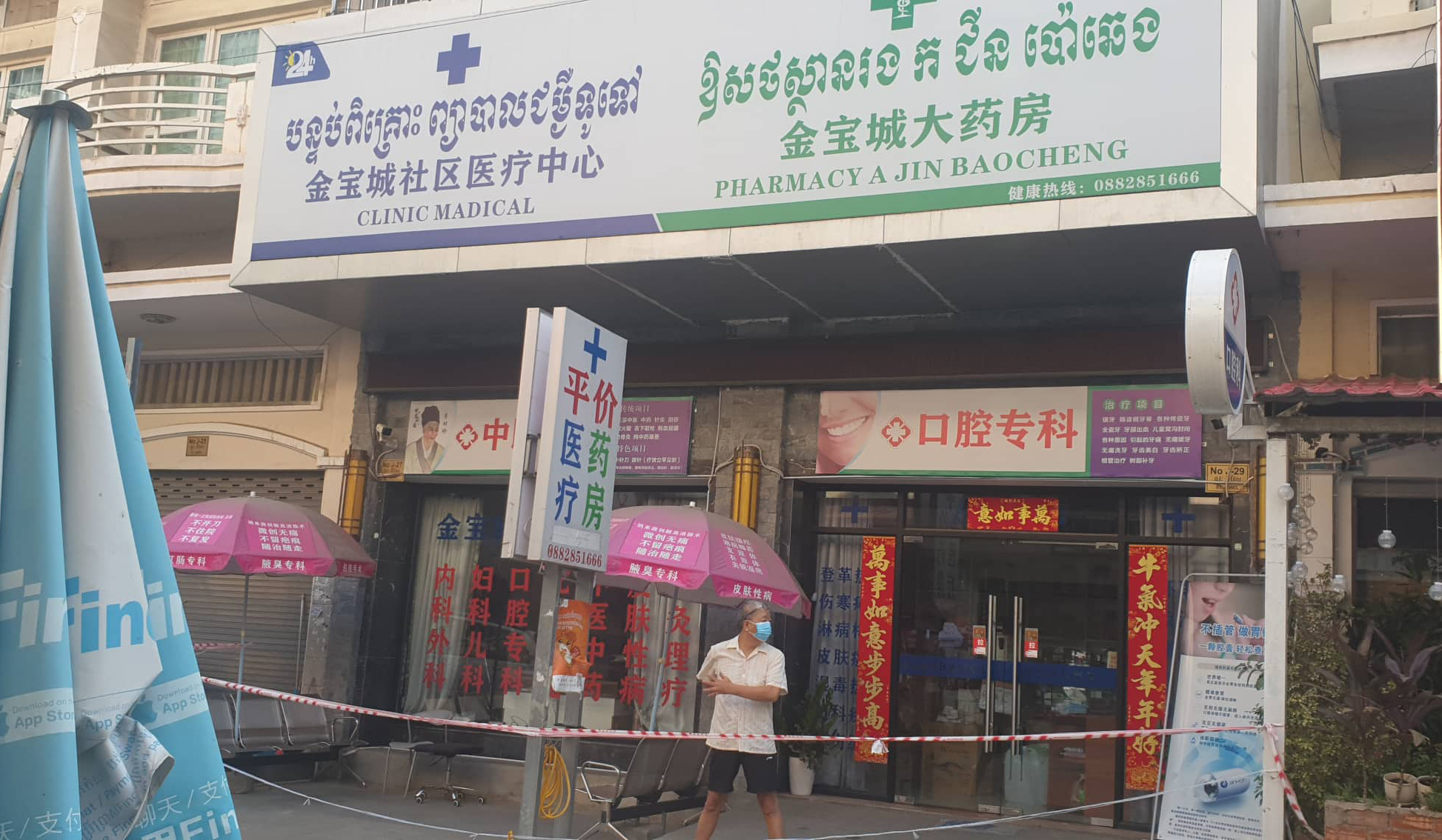 នៅព្រឹកថ្ងៃទី១១ មីនា នេះ ដើម្បីចង់ដឹងពីស្ថានភាពជុំវិញផ្សារ កោះសន្តិភាពបានចុះដោយផ្ទាល់ សាកសួរសមត្ថកិច្ចនិងអាជ្ញាធរ ហើយសង្កេតឃើញថា អ្នករស់នៅ ជុំវិញផ្សារនោះ ដែលភាគច្រើនជាជនជាតិខ្លះបានបើកដំណើរការហាងរបស់ខ្លួន ឡើងវិញហើយ ។ ដោយឡែក ផ្ទះ២ល្វែង គឺលេខ២៧ និង២៩ ផ្លូវជឺវែល ដែលជាបន្ទប់ ពិគ្រោះ ព្យាបាលជំងឺទូទៅនិងឪសថ ស្ថានរងកជីនប៉ោឆេង ស្ថិតនៅ ក្នុងបុរីកាណាឌីយ៉ាក្នុងភូមិ ចុងថ្នល់ខាងកើត សង្កាត់ទឹកថ្លា ខណ្ឌសែនសុខ រាជធានីភ្នំពេញ ដែលជាទីតាំងរកឃើញ វិជ្ជមានកូវីដ លើជនជាតិចិន២នាក់ ដែលមកសម្រាកព្យាបាល ដែលត្រូវបានអាជ្ញាធរនិងសមត្ថកិច្ចបានបិទទ្វារទុកមនុស្សចំនួន ៦នាក់ នៅខាងក្នុងធ្វើចត្តាឡីស័កចំនួន ១៤ថ្ងៃ និងបានយកសំណាក់ទៅត្រួតពិនិត្យ គេឃើញ លោកគ្រូចិន ជីនប៉ោឆេង បានចេញមកហាត់ប្រាណនៅមុនផ្ទះយ៉ាងស្វាហាប់ដូចជាមានសុខភាពធម្មតានោះទេ ។