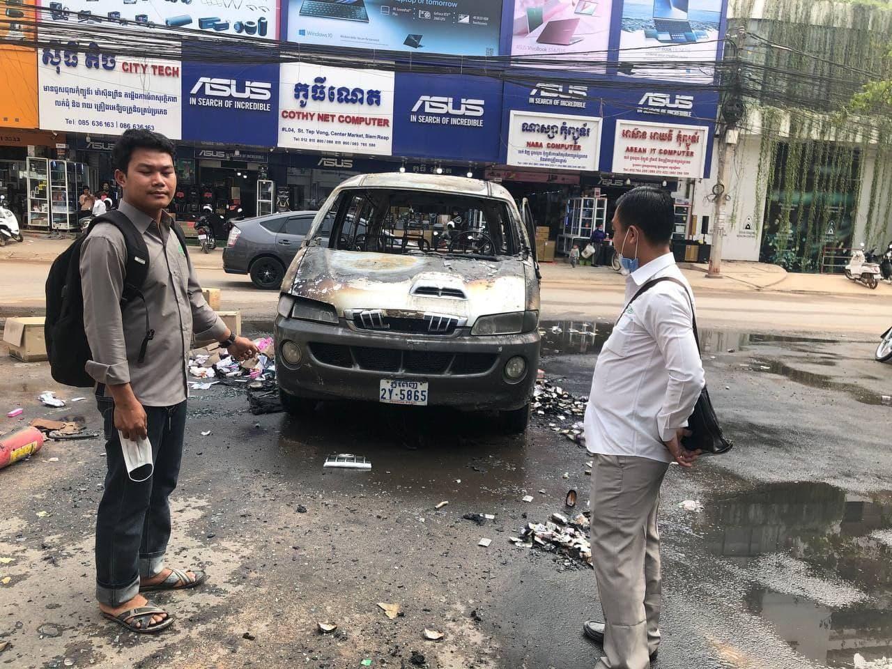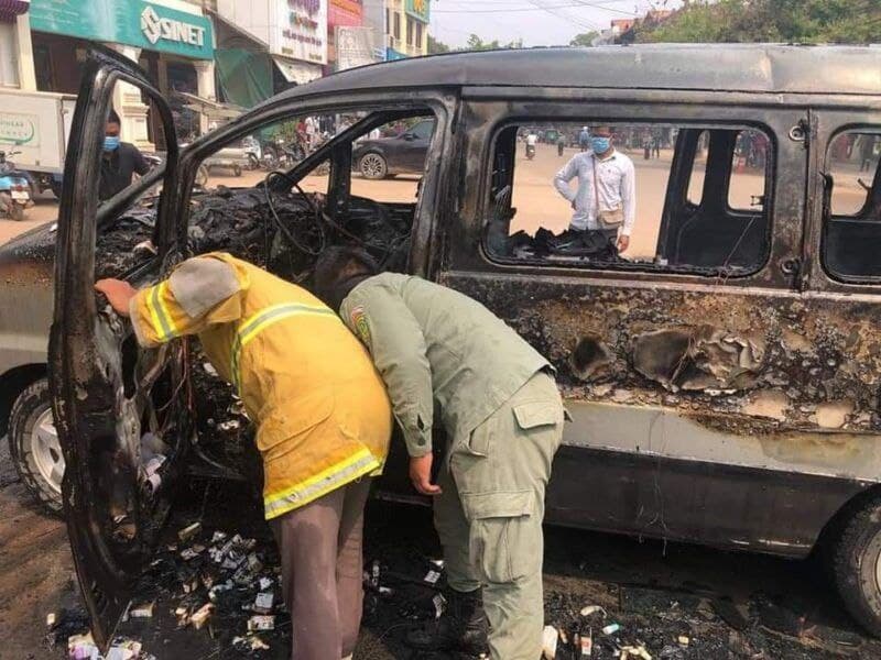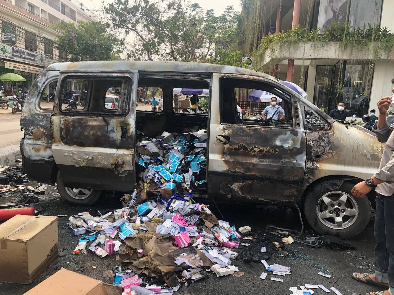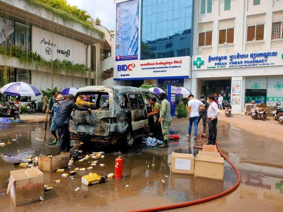 ឆេះឡានដឹកថ្នាំពេទ្យយ៉ាងសន្ធោសន្ធៅនៅក្រុងសៀមរាប