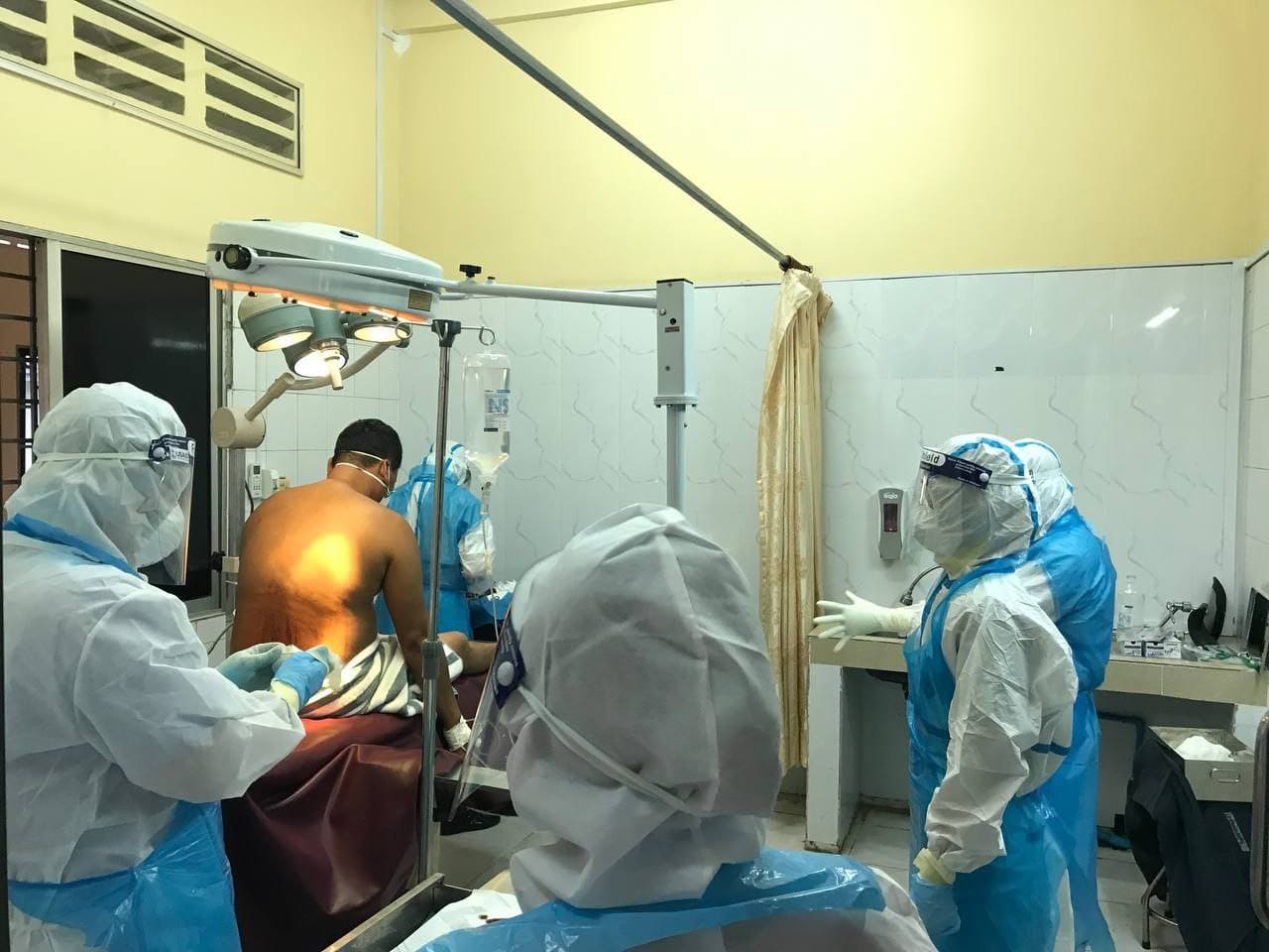 ខេត្តកំពង់ឆ្នាំង ៖ បុរសអ្នកកើតជំងឺកូវីដ-១៩ម្នាក់ ត្រូវបានគ្រូពេទ្យនៃមន្ទីរពេទ្យបង្អែកខេត្ត វះកាត់ខ្នែងពោះវៀនប្រកបដោយជោគជ័យ ។ នេះបើតាមការបញ្ជាក់របស់ក្រុមគ្រូពេទ្យ ដែលទទួលការងារវះកាត់ជួយសង្គ្រោះបុរសខាងលើនេះ ។