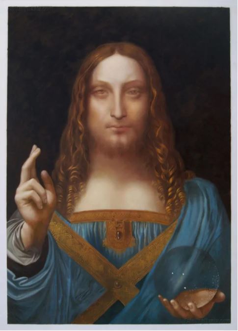 Salvator Mundi រូបគំនូរទី ១ គូរថ្នាំប្រេងមានឈ្មោះ Salvator Mundi ៖ ផ្គុំឡើងវិញ និងគូរឡើងវិញដោយលោក Leonardo da Vinci មានតម្លៃ ៤៥០.៣ លានដុល្លារអាមរិក ។ ប្រសិនបើអ្នកក្រឡែកទៅមើលរូបភាពអ្នកនឹងឃើញបុរសម្នាក់ ដែលជាបុព្វជិត ព្រះយេស៊ូគ្រឹស ដែលមានកាន់កែវគ្រីសស្តាល់ថ្លាមួយ បានក្លាយជាគំនូរដែលថ្លៃជាងគេបំផុតក្នុងលោក ។ គំនូរនេះត្រូវបានគូរដោយស្តេចល្វីសទី ១២ នៃប្រទេសបារាំងនៅឆ្នាំ ១៦០៥ ក្នុងកំឡុងពេលដូចគ្នានឹងរូបគំនូរ The Mona Lisa ដែរ ។ វាត្រូវបានបាត់បង់ម្តងហើយ នៅចន្លោះឆ្នាំ ១៧៦៣ ដល់ ឆ្នាំ ១៩០០ រហូតមកដល់ឆ្នាំ ២០០៥ ត្រូវបានរកឃើញដោយក្រុមឈ្មួញនៃសិល្បៈជនជាតិអង់គ្លេស ។ រូបគំនូរដែលមានអត្ថន័យថា “«សង្គ្រោះពិភពលោក» ត្រូវបានទិញដោយព្រះអង្គម្ចាស់ រាជទាយាទ អារ៉ាប៊ីសាអូឌីត Mohammed bin Salman ក្នុងនាម និងតំណាងឱ្យនាយកដ្ឋានវប្បធម៌ និងទេសចរណ៍អាប៊ូដាប៊ី ។