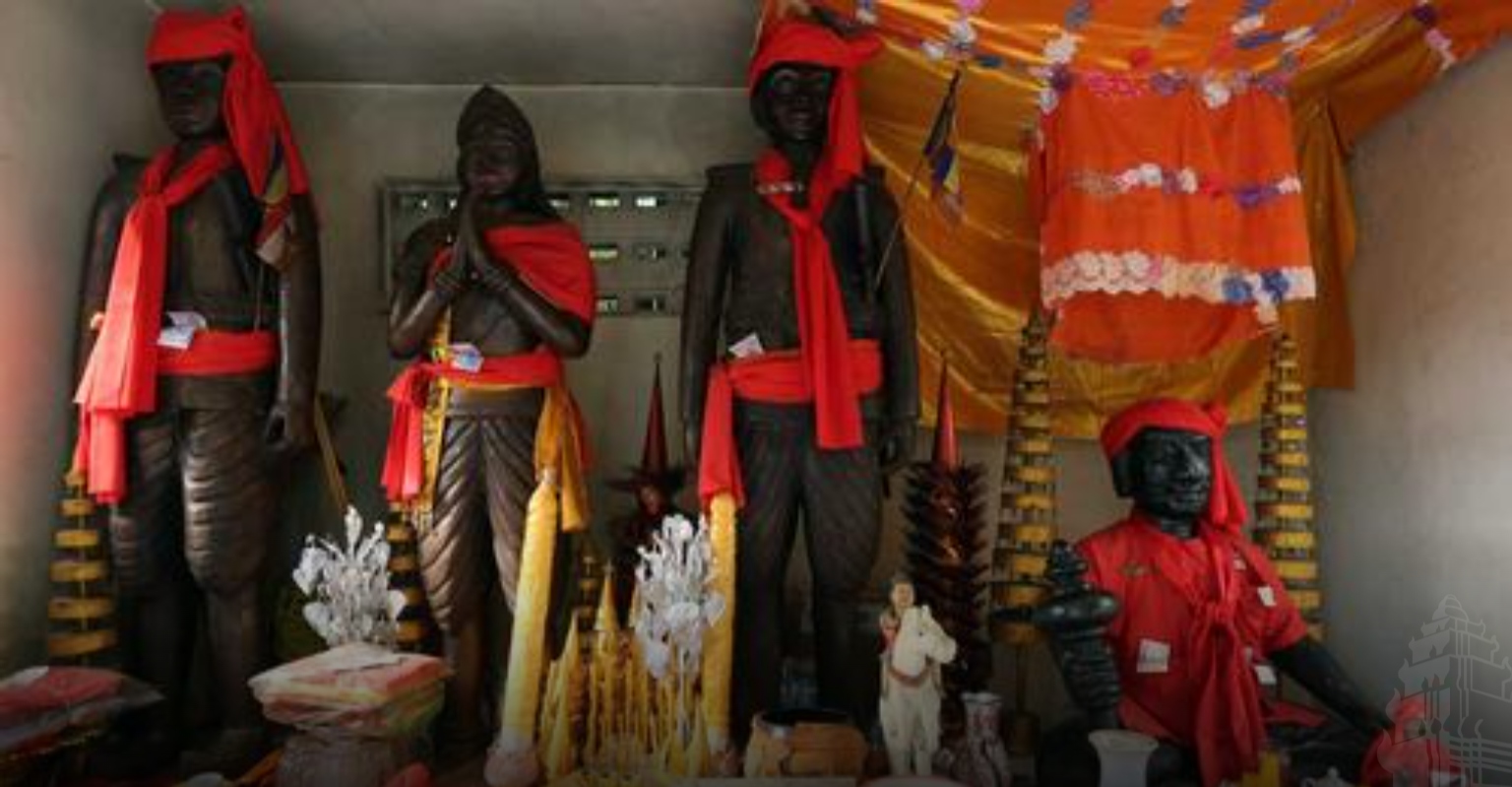 គ្រប់គ្នាសុទ្ធតែបានដឹងអំពីបារមីដ៏ស័ក្តិសិទិ្ធរបស់រូបសំណាកទាំងពីរនេះ ប៉ុន្តែអាចស្រពេចស្រពិលអំពីប្រវត្តិរបស់រូបសំណាកទាំងពីរនេះ ។ រូបសំណាកទាំងពីរនេះធ្លាប់ស្ថិតក្នុងការគ្រប់គ្រងរបស់លោកឧត្តមសេនីយ៍ផ្តាច់ការម្នាក់គឺដាប ឈួន បន្ទាប់មកក៏ធ្លាក់ដល់ដៃកងទ័ពខ្មែរក្រហមនាំយកទៅទម្លាក់ចោលក្នុងទឹកស្ទឹងសៀមរាបអស់ពេល៥ឆ្នាំ ។ ចុងក្រោយរូបសំណាកដ៏មានបារមីនេះបានត្រឡប់មកទីតាំងដើមវិញជាថ្មីម្តងទៀត ។ មហាជនគ្រប់គ្នាមានជំនឿថា បដិមាទាំងពីរនេះតែងតែការពារទឹកដីខេត្តសៀមរាបពីមួយជំនាន់ទៅមួយជំនាន់ និងជួយការពារមហាជនដែលមកបួងសួងសុំសេចក្តីសុខនិងឱ្យសម្រេចសេចក្តីប្រាថ្នាជានិច្ច ។