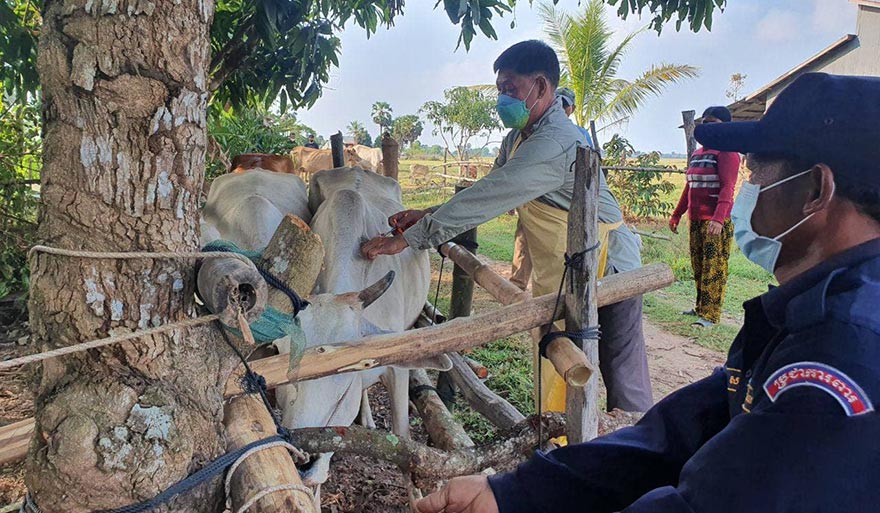 ប្រជាកសិករមានការព្រួយបារម្ភអំពីជំងឺសាទឹក និងជំងឺអុតក្តាមដែលកើតលើសត្វគោ សត្វក្របីរបស់ពួកគាត់ ខណៈពេលមន្ត្រីការិយាល័យផលិតកម្ម និងបសុព្យាបាលនៃមន្ទីរកសិកម្មរុក្ខាប្រម៉ាញ់ និង
