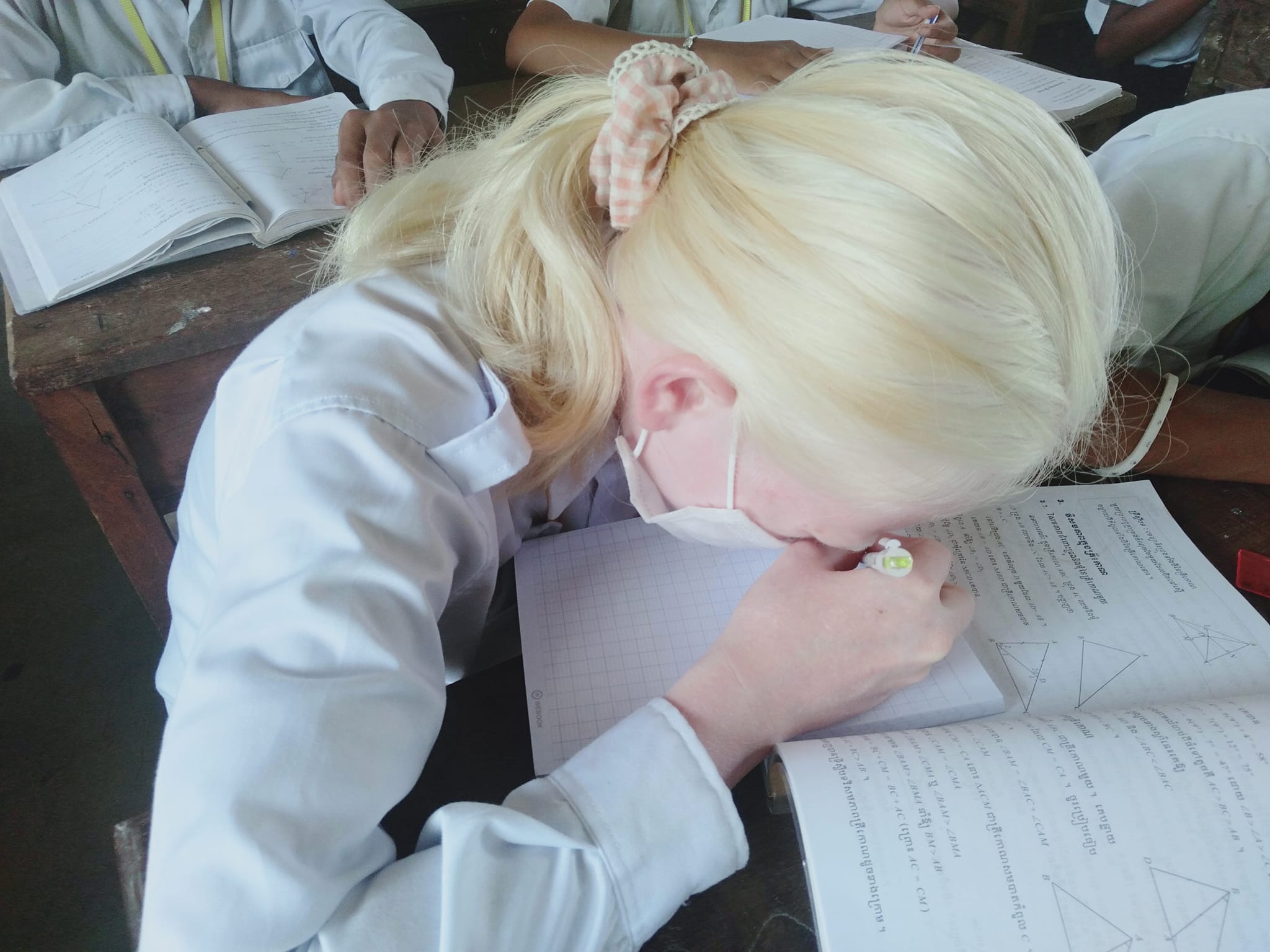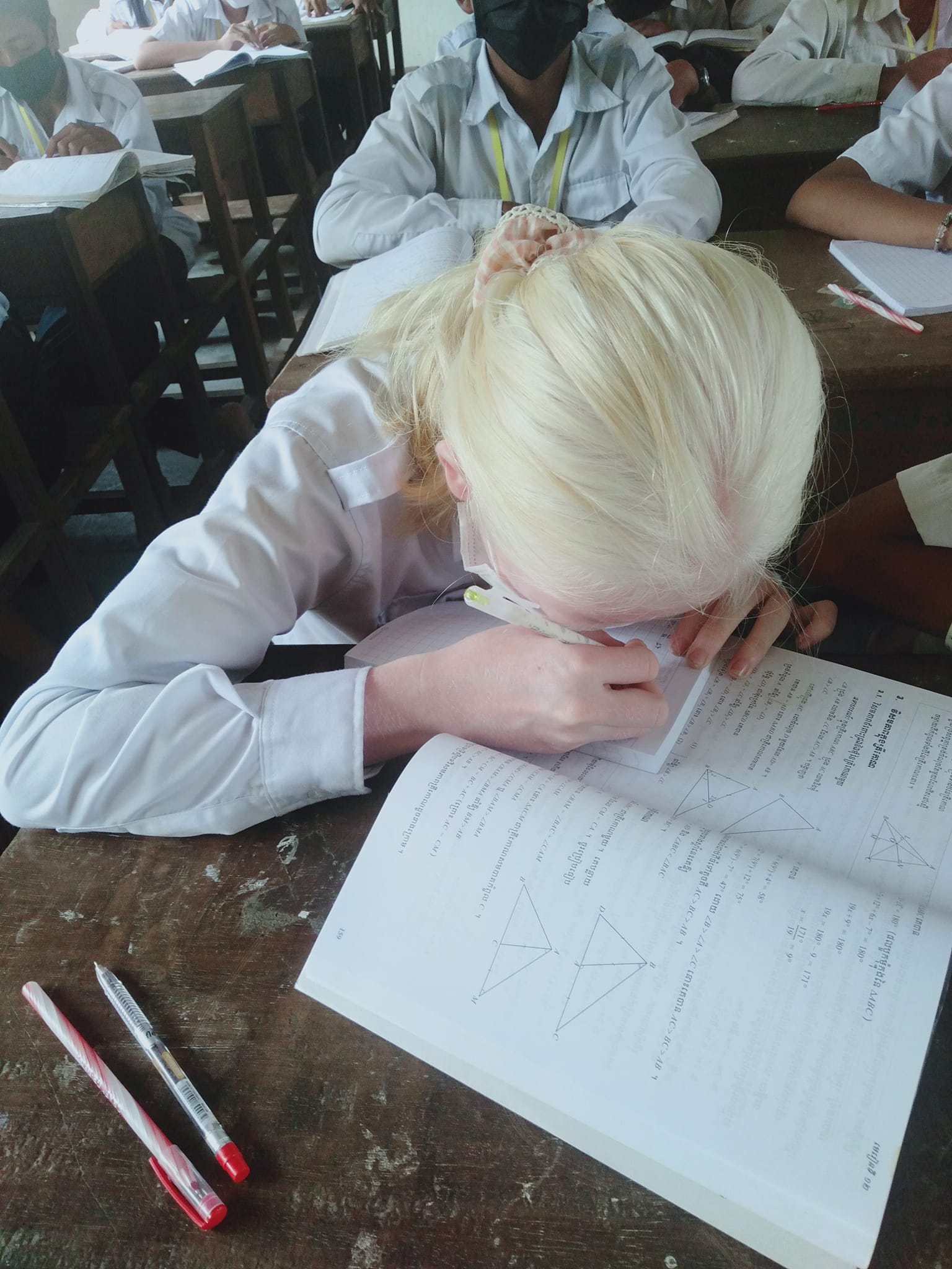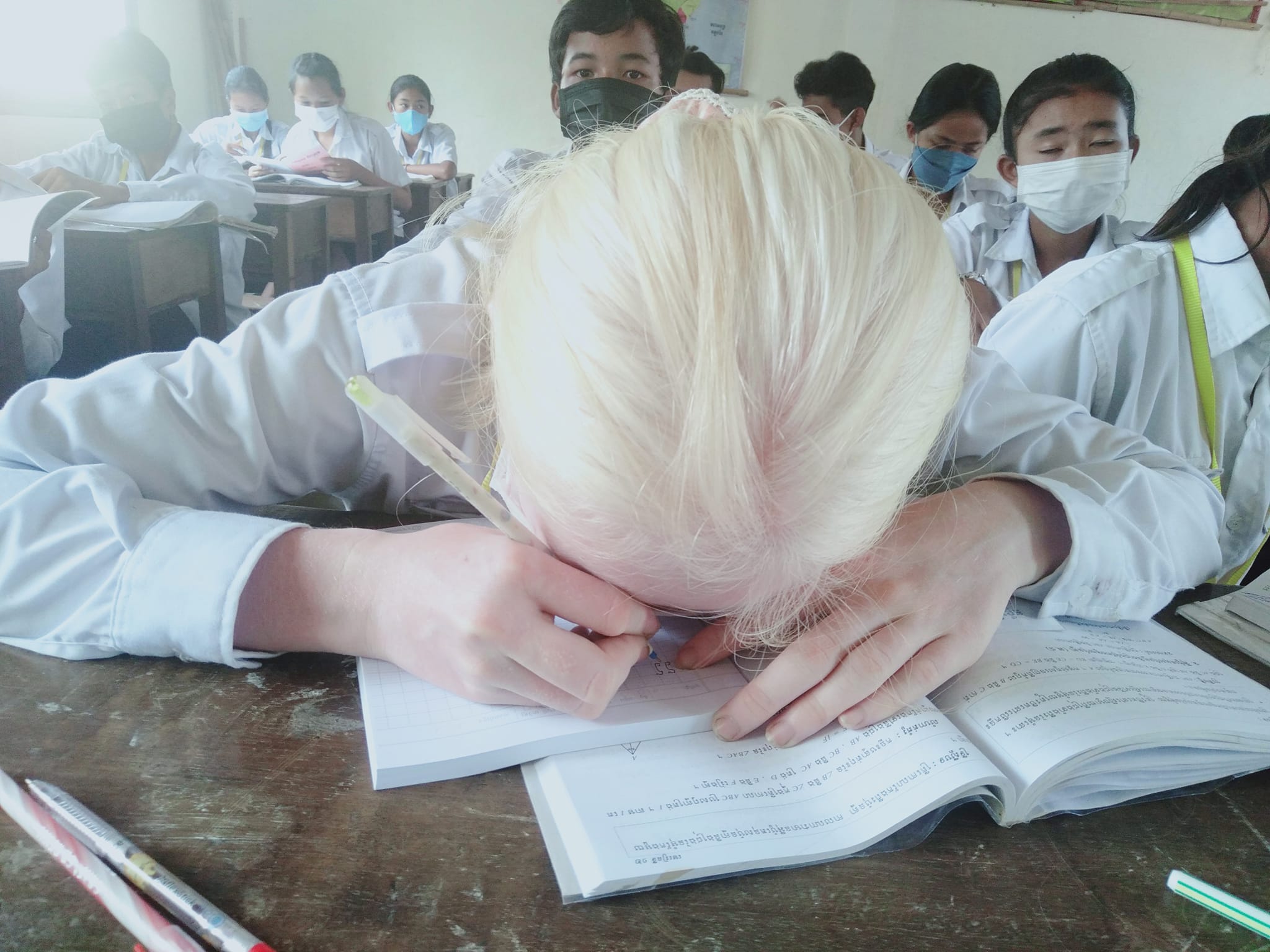 លោកគ្រូ កែវ ដន បានបង្ហោះរូបថត និងសរសេរនៅលើហ្វេសប៊ុក នាថ្ងៃទី១៧ ខែមីនាថា «មិនមែនជនជាតិបារាំងទេ គាត់ជាកូនសិស្សរបស់ខ្ញុំ រៀននៅថ្នាក់ទី៨(ក) តែគាត់ងងឹតភ្នែកទេ ពិបាកមើល និងសរសេរណាស់។![🙏]()