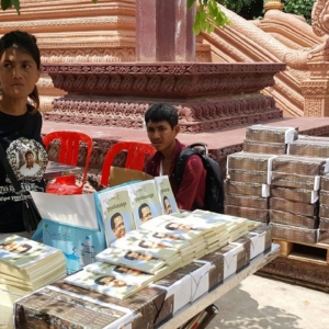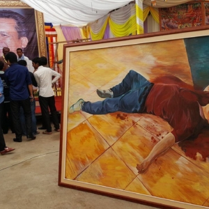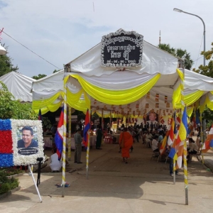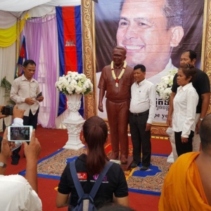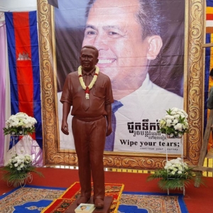 រាជធានីភ្នំពេញ ៖ ខណៈថ្ងៃនេះ ជាថ្ងៃទី០១នៃការប្រារព្ឋពិធីបុណ្យគម្រប់១០០ថ្ងៃសពលោកបណ្ឌិត កែម ឡីនោះ រូបសំណាករបស់អ្នកវិភាគនយោបាយនិងសង្គមរូបនេះ បានត្រូវក្រុមគ្រួសារនិងគណៈកម្មការបុណ្យសព យកមកតម្កល់ទុកបណ្តោះអាសន្ននៅក្នុងបរិវេណវត្តចាស់ ស្ថិតក្នុងសង្កាត់-ខណ្ឌជ្រោយចង្វារ នាវេលាម៉ោងជិត១១ថ្ងៃត្រង់ថ្ងៃទី១៤ តុលានេះ ។