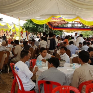 សេចក្តីរាយការណ៍ពីទីតំាងរៀបចំបុណ្យគម្រប់១០០ថ្ងៃសពលោកបណ្ឌិត កែម ឡី បានឲ្យដឹងនៅប៉ុន្មាននាទីមុននេះថា គិតត្រឹមវេលាម៉ោង១១និង៥៥នាទីថ្ងៃត្រង់ថ្ងៃសុក្រដដែលនេះ ក្រុមអ្នកគំាទ្រលោកបណ្ឌិត កែម ឡី ជាង២០០នាក់ បានចូលរួមក្នុងពិធីបុណ្យនៅថ្ងៃដំបូងនេះ ។