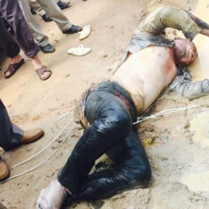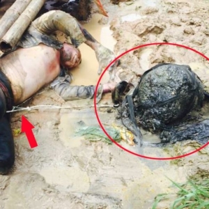 ការពិនិត្យសាកសពបុរសខាងលើឃើញថា ជនរងគ្រោះមានពាក់អាវក្រឡាការ៉ូ និងពាក់ខោជើងវែងពណ៌ខ្មៅ មានអាយុប្រហែល៤០ឆ្នាំចុះក្រោម ។ សពត្រូវបានចងខ្សែសណ្តូនជាមួយដុំថ្មធំមួយ ទម្ងន់ជិត១០គីឡូក្រាម ជាប់ជាមួយចង្កេះសព ដែលមើលទៅ គឺធ្វើឱ្យលិចទឹកតែម្តង ។