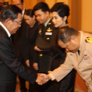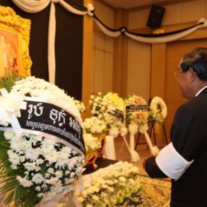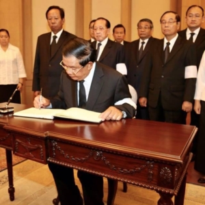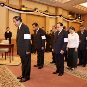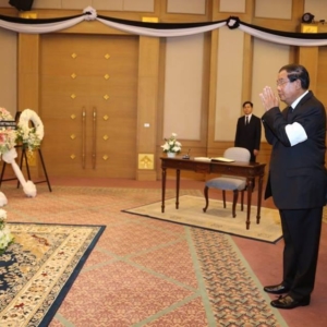 រាជធានីភ្នំពេញ ៖ សម្តេចអគ្គមហាសេនាបតីតេជោ ហ៊ុន សែន បានដឹកនំាមន្រ្តីជាន់ខ្ពស់រាជរដ្ឋាភិបាលអញ្ជើញទៅគោរពវិញ្ញាណក្ខន្ធព្រះមហាក្សត្រថៃ ភូមិបុល អាឌុលយ៉ាដេត (Bhumibol Adulyadej)នៅស្ថានទូតថៃប្រចាំព្រះរាជាណាចក្រកម្ពុជា ។ ព្រះមហាក្សត្រថៃ ភូមិបុល អាឌុលយ៉ាដេត (ព្រះចៅយូហួរ) បានសោយទិវង្គតកាលពីរសៀលថ្ងៃទី១៣ តុលា ២០១៦ ក្នុងព្រះជន្ម៨៩ព្រះវស្សា ។ រាជដ្ឋាភិបាលប្រទេសថៃ បានប្រកាសកាន់ទុក្ខរយៈពេល១ឆ្នាំ។