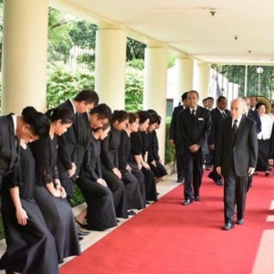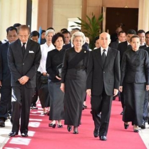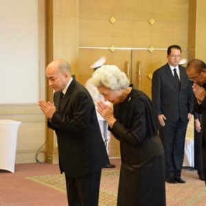 រាជធានីភ្នំពេញ ៖ ព្រះករុណា ព្រះបាទ សម្តេចព្រះបរមនាថ នរោត្តមសីហមុនី ព្រះមហាក្សត្រនៃព្រះរាជាណាចក្រកម្ពុជានិងសម្តេចព្រះមហាក្សត្រី នរោត្តមមុនិនាថ សីហនុ ព្រះវររាជមាតាជាតិខ្មែរក្នុងសេរីភាព សេចក្តីថ្លៃថ្នូរនិងសុភមង្គល (សម្តេចម៉ែ) បានយាងទៅគោរពព្រះវិញ្ញាណក្ខន្ឋព្រះមហាក្សត្រថៃ ភូមិបុល អាឌុលយ៉ាដេត នៅស្ថានទូតថៃប្រចំាកម្ពុជា នាព្រឹកថ្ងៃទី១៨ តុលា ២០១៦ ៕