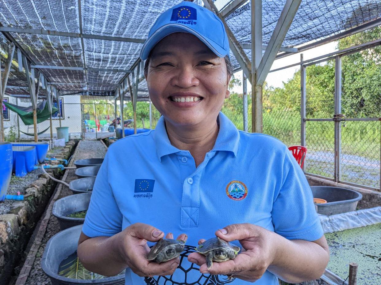 អង្គការ WCS បាន និងកំពុងសហការជាមួយរដ្ឋបាលជលផលនៃក្រសួងកសិកម្ម រុក្ខាប្រមាញ់ និងនេសាទ ចាប់តាំងពីឆ្នាំ ២០០០ ដើម្បីអភិរក្សប្រភេទអណ្តើកហ្លួងនេះ (មានឈ្មោះវិទ្យាសាស្ត្រថា Batagur affinis edwardmolli) នៅកម្ពុជា។