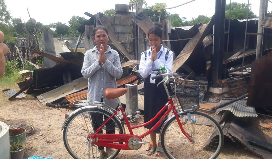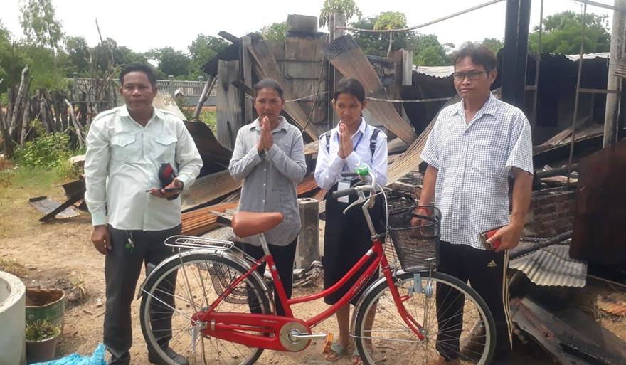 ក្រោយពីទទួលបានព័ត៌មានស្ដីអំពីស្ត្រីមេម៉ាយម្នាក់ រស់ជាមួយកូនស្រី ត្រូវបានអគ្គិភ័យឆាបឆេះផ្ទះខ្ទេចអស់ទាំងស្រុង