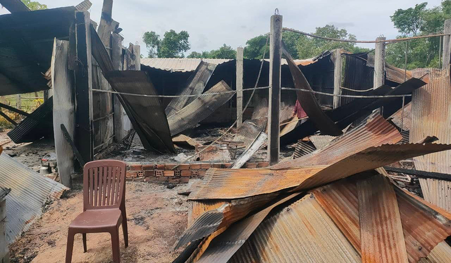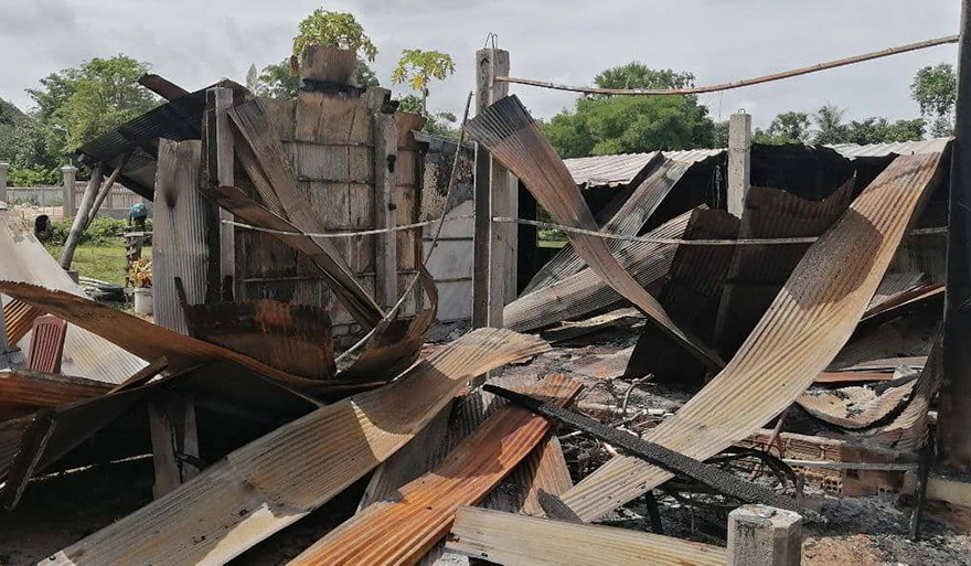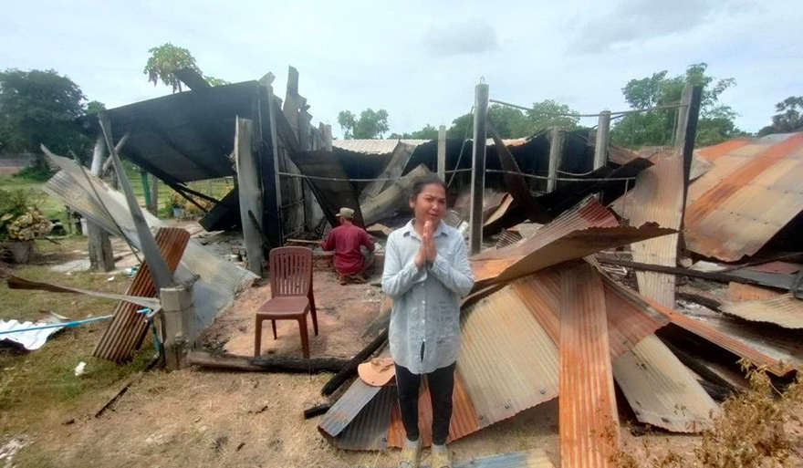 ស្ត្រីខាងលើបន្តទៀតថា ក្រោយពីលែងលះគ្នា រូបគាត់ និងកូនស្រី មិនហ៊ានដេកនៅផ្ទះទេ គឺបានមកដេកនៅផ្ទះបងប្អូន ដែលមានរបងជាប់គ្នា។ នៅយប់ថ្ងៃកើតហេតុ គឺយប់ថ្ងៃទី១៣ ខែមិថុនា ឆ្នាំ២០២២ វេលាម៉ោងប្រមាណ៩និង៣០នាទីយប់ ស្រាប់តែមានអគ្គិភ័យឆាបឆេះផ្ទះរបស់គាត់ ដែលមានទំហំ៤ម៉ែត្រកន្លះ គុណនឹង៦ម៉ែត្រ ខ្ទេចទាំងស្រុងគ្មានសេសសល់អ្វីឡើយ សូម្បីតែកង់កូនស្រីជិះទៅរៀន និងកង់របស់គាត់ជិះទៅធ្វើការ (គាត់ជាអ្នកអនាម័យនៅក្រុមហ៊ុនទូរស័ព្ទមួយ) ក៏ត្រូវឆេះខ្ទេចអស់ដែរ គ្មានសេសសល់អ្វីឡើយ ដោយសារហេតុនេះហើយ ទើបរូបគាត់សូមអំពាវនាវដល់បងប្អូនសប្បុរសធម៌ទាំងអស់ សូមមេត្តាជួយឧបត្ថម្ភ កសាងជម្រកស្នាក់នៅឲ្យគាត់រស់នៅជាមួយកូនស្រីបានវិញផង។
