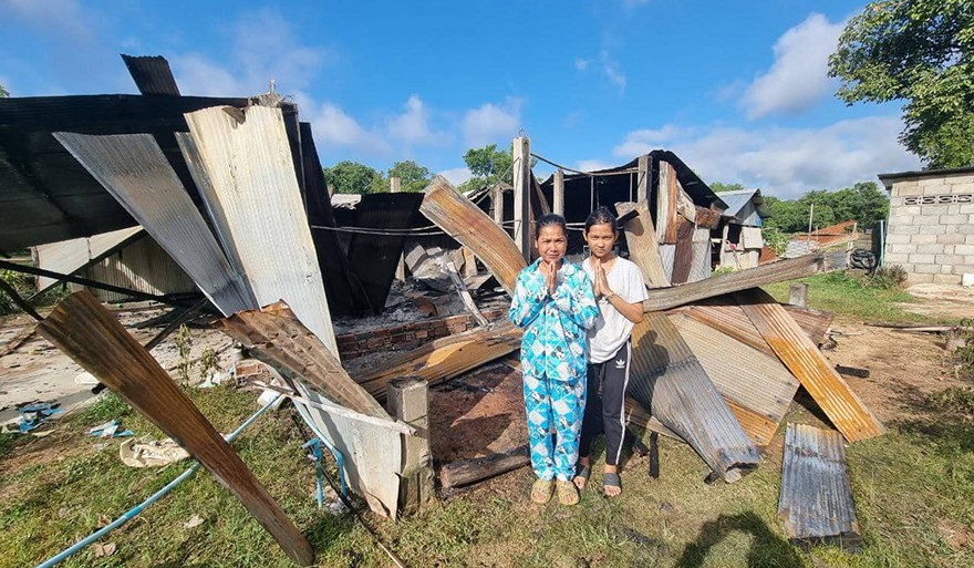 ស្ត្រីមេម៉ាយនិងកូនស្រីរងគ្រោះដោយភ្លើងឆេះផ្ទះ អំពាវនាវជួយសង់លំនៅដ្ឋានដើម្បីរស់នៅសមរម្យផង!