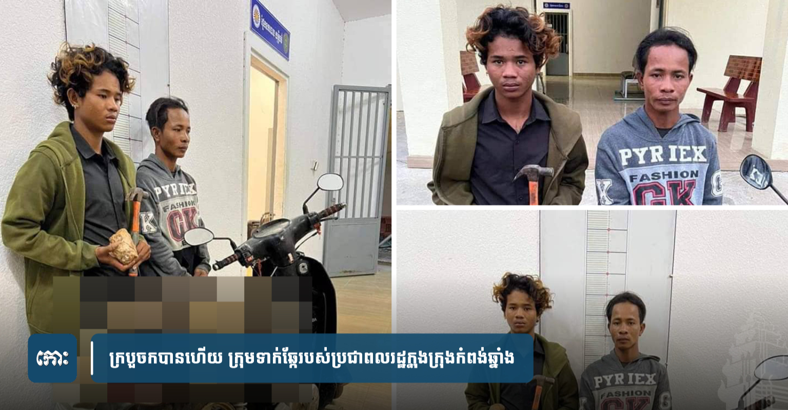 ខេត្តកំពង់ឆ្នាំង ៖ ជនសង្ស័យ២នាក់ជាបងប្អូនបង្កើត ដែលល្បីល្បាញខាងទាក់ឆ្កែរបស់ប្រជាពលរដ្ឋតាមដងផ្លូវ ពេលនេះត្រូវជាប់អន្ទាក់របស់សមត្ថកិច្ចនៃអធិការរដ្ឋាននគរបាលក្រុងកំពង់ឆ្នាំង កាលពីវេលាម៉ោង ០៣រំលងអធ្រាត្រ ឈានចូលថ្ងៃទី០២ ខែកក្កដា ឆ្នាំ២០២២ ខណៈដែលពួកគេធ្វើសកម្មភាពទាក់ឆ្កែ ប្រជាពលរដ្ឋនៅក្នុងសង្កាត់កំពង់ឆ្នាំង ក្រុងកំពង់ឆ្នាំង ។