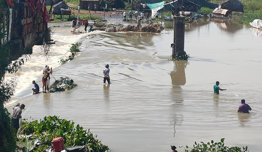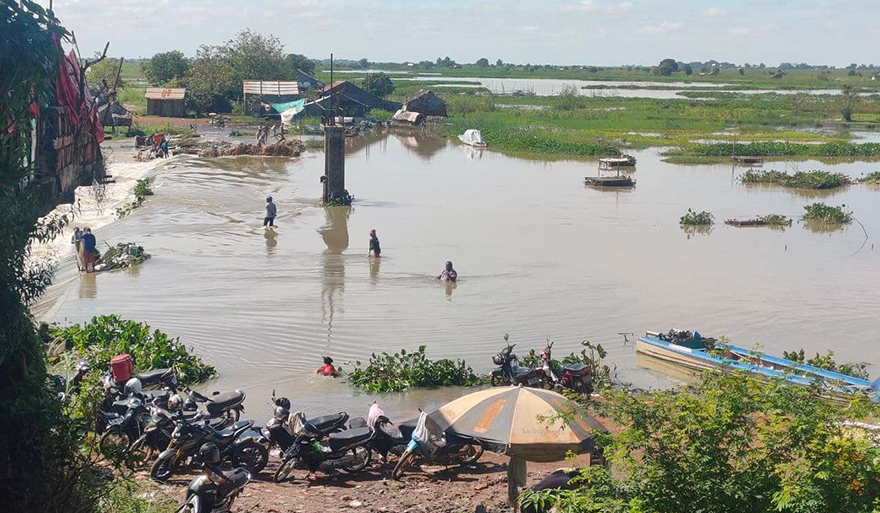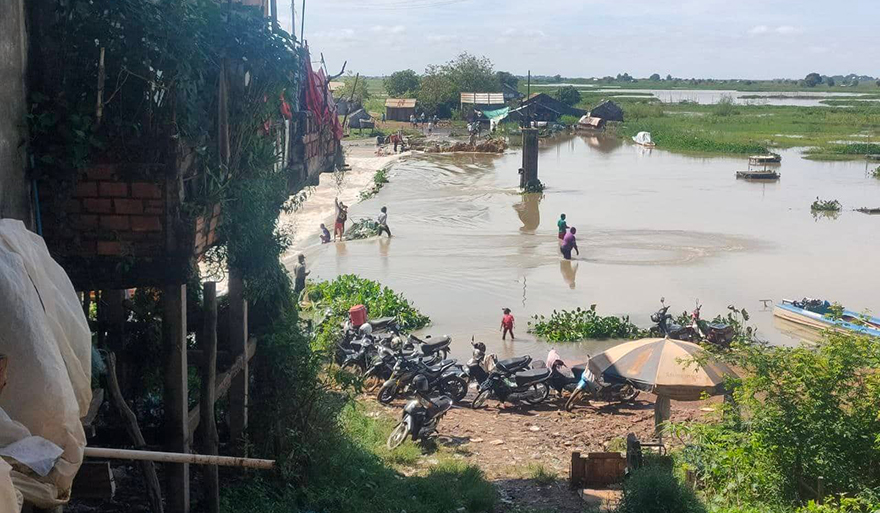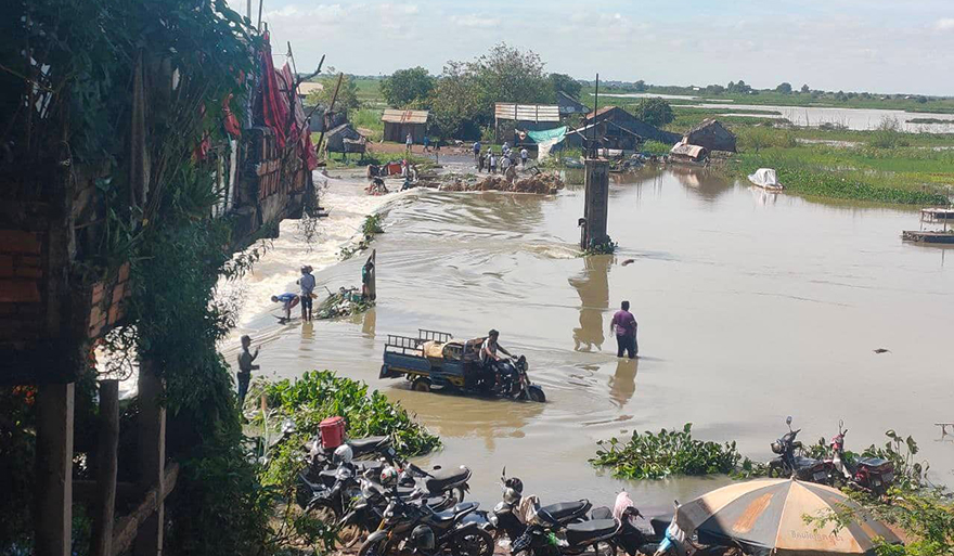 រយៈពេលពីរបីថ្ងៃនេះ ស្ថានភាពជំនន់ទឹកភ្លៀងបានហូរតាមព្រែកកាត់លើផ្លូវខ្នងទំនប់បារាំង