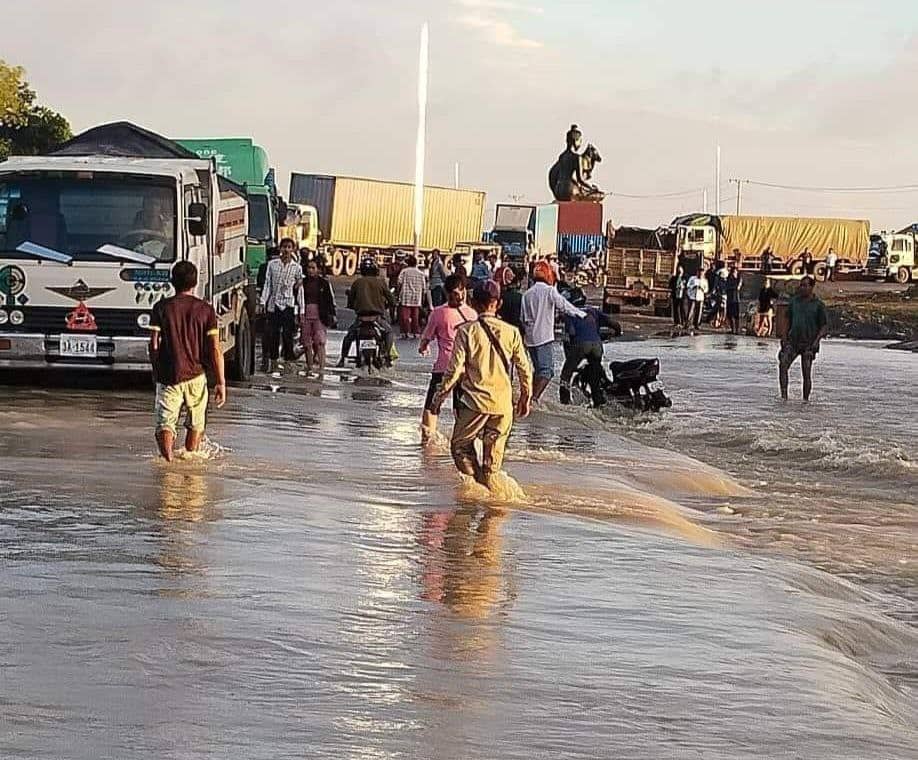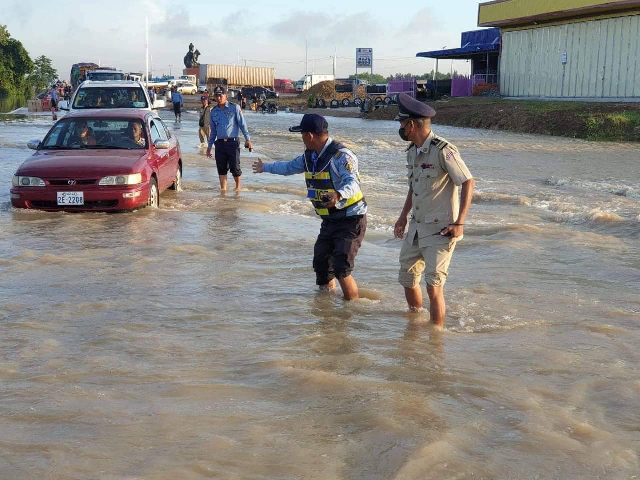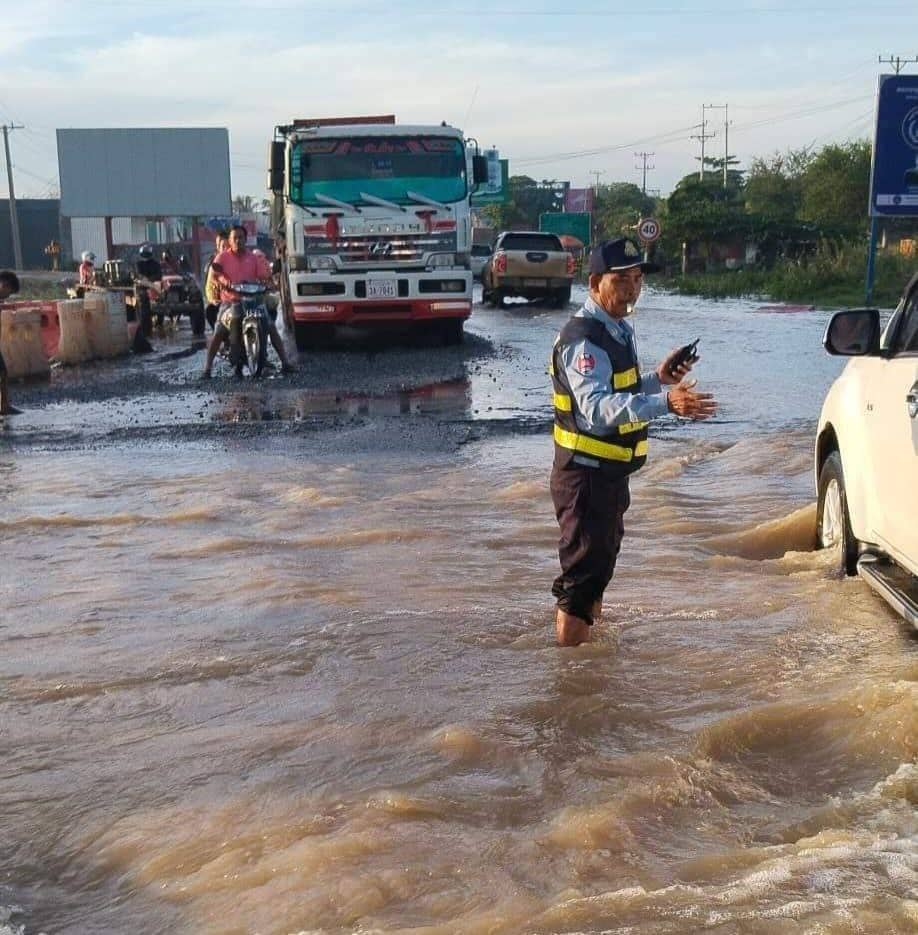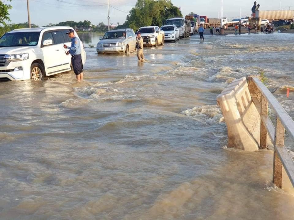 ប្រយ័ត្ន ! ជំនន់ទឹកភ្លៀងធ្លាក់យ៉ាងគំហុកពីទ្វារទឹកអន្លង់ជ្រៃហូរកាត់ផ្ដាច់ផ្លូវជាតិលេខ៥