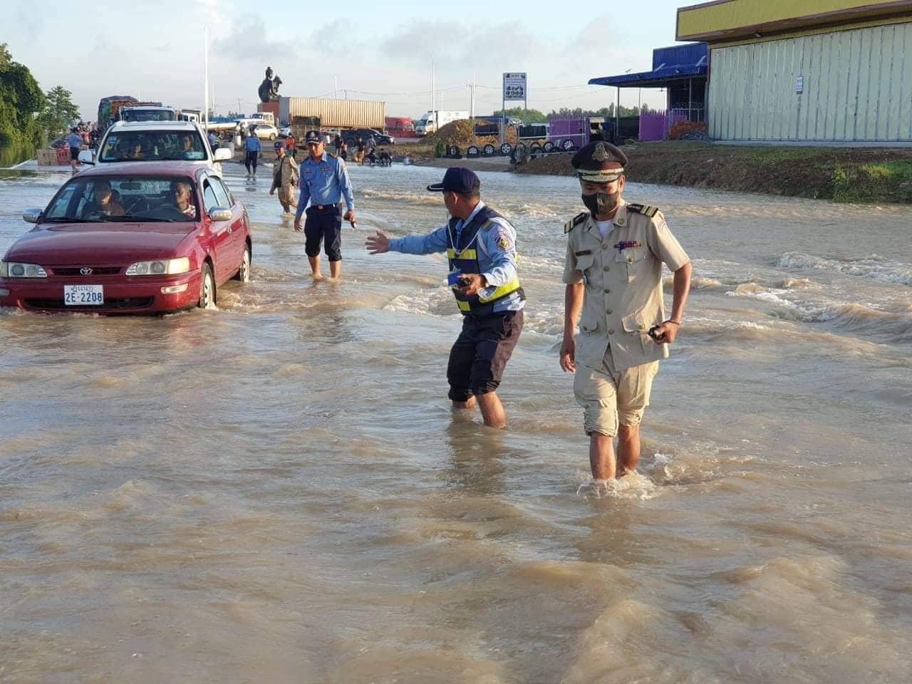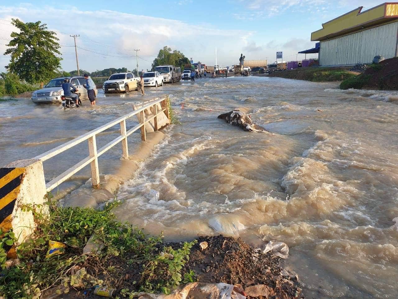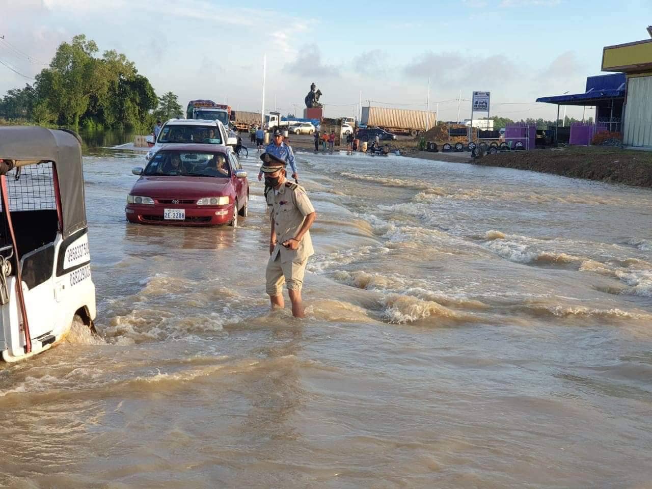 ប្រយ័ត្ន ! ជំនន់ទឹកភ្លៀងធ្លាក់យ៉ាងគំហុកពីទ្វារទឹកអន្លង់ជ្រៃហូរកាត់ផ្ដាច់ផ្លូវជាតិលេខ៥