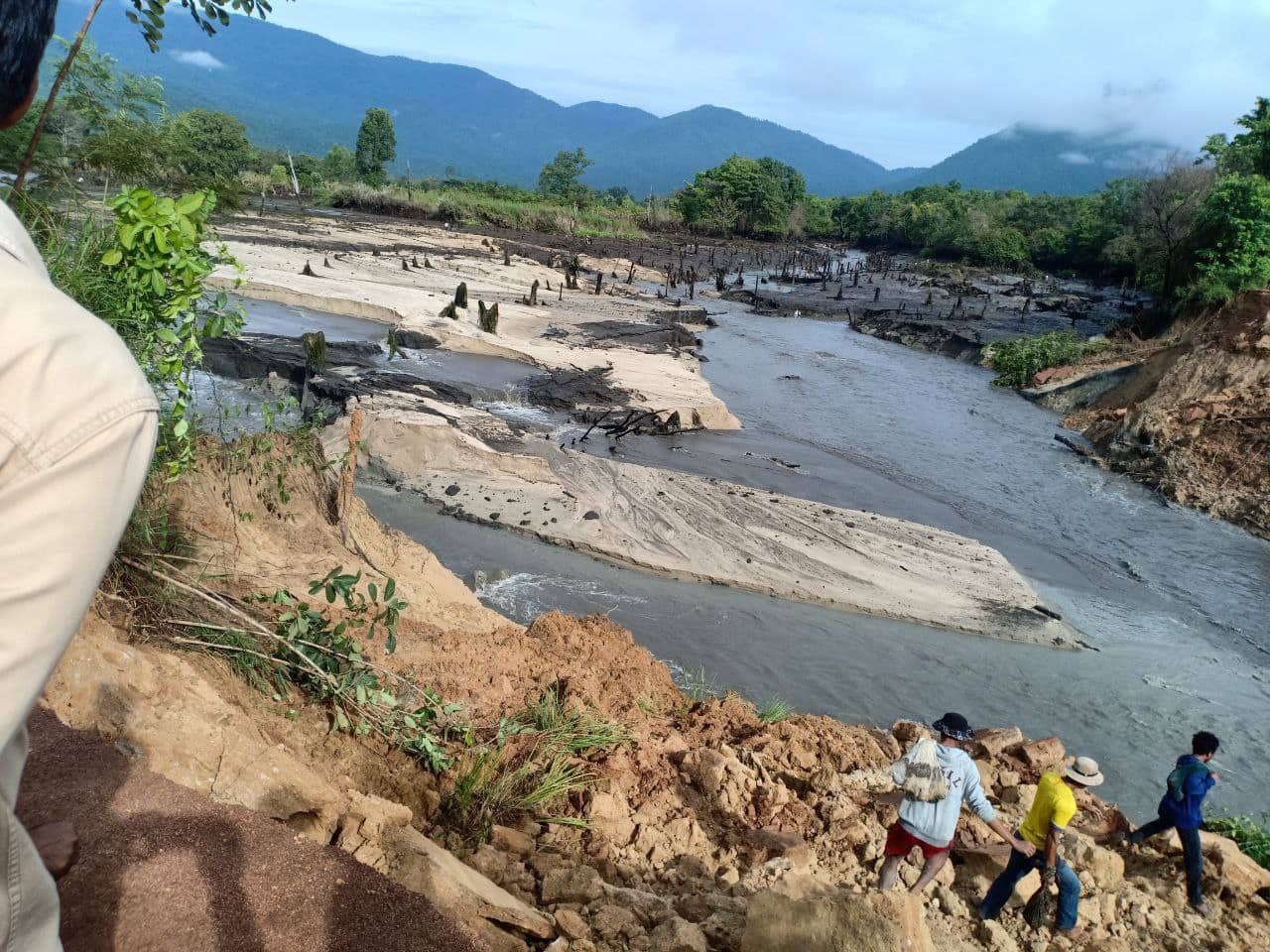 មន្ត្រីជំនាញបានទប់ស្ទាក់ទឹកមិនឱ្យហូរតាមផ្លូវទឹក ដែលធ្លាក់តាមអូរ តាមលំនាំដើម ព្រោះកំពុងត្រូវធ្វើសំណង់ធារាសាស្ត្រ នៅទីនោះ ហើយបានបង្វែរទឹកឲ្យហូរមកតាមប្រឡាយមួយផ្សេងវិញ ។ប៉ុន្តែប្រឡាយនោះមានមុខទឹកតូចពេកទើបបណ្ដាលឲ្យទឹកចេះតែជន់ឡើងរហូតដល់បាក់ទំនប់ ដែលជាផ្លូវធ្វើដំណើរ របស់ប្រជាពលរដ្ឋ និងទៅកាន់រមណីយដ្ឋានថ្មក្រាលតែម្តង។