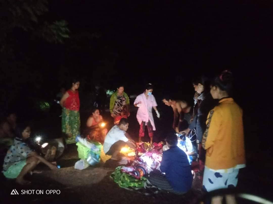 ប្រភពដពីមន្ត្រីបរិស្ថានឈរជើងនៅជិតនោះបានបន្តថា ស្ត្រីឈ្មោះ ឌៀង ផល្លី អាយុ២៧ឆ្នាំ រស់នៅភូមិកោះខ្ទុម ឃុំជៀប ស្រុកទឹកផុស ។ គាត់បានឈឺពោះសម្រាលកូន ហើយពេលធ្វើដំណើរមកដល់ចំណុចផ្លូវដាច់មិនអាចទៅបាន ព្រោះតែទឹកនៅហូរខ្លាំង ហើយត្រូវរង់ចាំរថយន្តសង្គ្រោះរបស់មណ្ឌលសុខភាព ។ ប៉ុន្តែចាំយូរពេក ស្ត្រីរូបនោះបាន សម្រាលកូននៅទីនោះដោយមានប្រជាពលរដ្ឋចេះធ្វើឆ្មបបុរាណជួយសម្រាលឱ្យ។