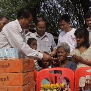 ខេត្ដបន្ទាយមានជ័យ ៖ ដូនចាស់វ័យ៦៧ឆ្នាំ ដែលមានចៅប្រុសស្រីចំនួន៣នាក់ នៅក្នុងបន្ទុកកំពុងរស់នៅក្នុងជំរកបណ្ដោះ អាសន្នក្នុងភូមិស្ទឹងចាស់ ឃុំគយម៉ែង ស្រុកមង្គលបុរី និងគ្រួសារទុរគតជនមួយទៀត មានសមាជិក៥នាក់ មានម្ដាយអាយុ៧៥ឆ្នាំ នៅភូមិស្ដីក្រោមឃុំគយម៉ែង ស្រុកមង្គលបុរី បានទទួលអំណោយកាកបាទក្រហម កាលពីព្រឹកថ្ងៃទី១៥ កក្កដា ឆ្នាំ២០១០ ។ លោកបេ ឱគិន ប្រធានគណៈកម្មាធិការអនុសាខាកាកបាទក្រហមកម្ពុជាស្រុក និងជាប្រធានក្រុមប្រឹក្សាស្រុកមង្គលបុរី ឱ្យដឹងថា អនុសាខាកាកបាទក្រហមស្រុក រួមនឹងអាជ្ញាធរស្រុក ដោយមានការចូលរួមពីសប្បុរសជនជាច្រើនទៀត បានទៅសួរសុខទុក្ខប្រជាពលរដ្ឋក្រខ្សត់ចំនួន២គ្រួសារនៅ ឃុំគយម៉ែង ដែលក្នុងនោះមានគ្រួសារ លោកយាយស៊ឹម សារុន អាយុ៦៧ឆ្នាំ រស់នៅជាមួយចៅចំនួន៣នាក់ ស្រី២នាក់ ដោយម្ដាយពួកគេបានស្លាប់ជាច្រើនឆ្នាំ ឯឪពុកផ្ទុកមេរោគអេដស៍ មិនរស់នៅក្នុងគ្រួសារនេះទេ និងគ្រួសារលោកយាយ ប៉ុក ដឿន អាយុ៧៥ឆ្នាំ ស្ថិតក្នុងស្ថានភាពជរាព្យាធិដែលមានកូនស្រីមេម៉ាយ និងចៅ៣នាក់ នៅក្នុងបន្ទុក ។