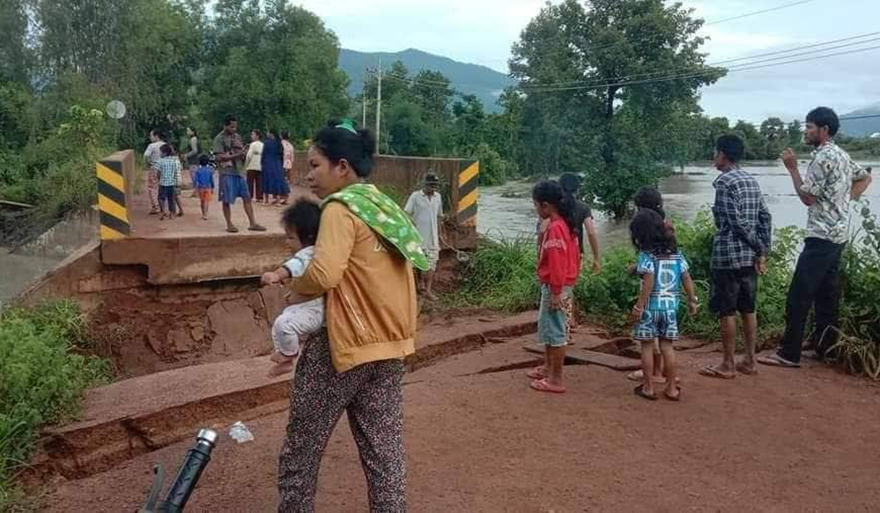 ស្ពានបណ្ដោះអាសន្នឆ្លងទំនប់ទឹកចាក់ទឹម ដែលកាត់ផ្តាច់ដោយទឹកភ្លៀងកសាងរួចរាល់ហើយ
