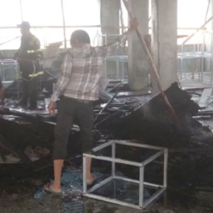 រាជធានីភ្នំពេញ ៖ ក្ដារពុម្ពជាច្រើនសន្លឹកដែលគេទុកនៅលើជាន់ទី៣ក្នុងសំណង់ផ្ទះល្វែងមួយកន្លែង ត្រូវបានអគ្គីភ័យឆាបឆេះយ៉ាងសន្ធោសន្ធៅ បង្កឲ្យមានការភ្ញាក់ផ្អើលឡើង…