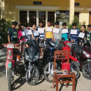 ខេត្តស្វាយរៀង ៖ សមត្ថកិច្ចការិយាល័យប្រឆាំងគ្រឿងញៀន នៃស្នងការដ្ឋាននគរបាលខេត្តសហការជាមួយកម្លាំងអធិការដ្ឋាននគរបាលក្រុងបាវិតចុះបង្ក្រាបបទល្មើស ជួញដូរ និងប្រើប្រាស់គ្រឿងញៀន បានចំនួន៩នាក់ស្រី៣នាក់ ក្នុងនោះជនជាតិវៀតណាម៣នាក់ ស្រី២នាក់ រឹបអូសវត្ថុតាងមួយចំនួនរួមមាន ថ្នាំញៀន១កញ្ចប់តូចទម្ងន់០,៥ក្រាម។ ទូរសព្ទ័ដៃចំនួន៨គ្រឿង ម៉ូតូ៥គ្រឿង ប្រាក់ដុង១,៣៥០,០០០ដុង និងប្រាក់ដុល្លារ២៧ដុល្លារ។