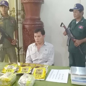 ខេត្តស្ទឹងត្រែង ៖ បុរសជនជាតិឡាវវ័យជាង៣០ម្នាក់ត្រូវបានបញ្ជូនទៅកាន់អយ្យការអមសាលាដំបូងកាលពីព្រឹកថ្ងៃទី៥ មីនា ២០១៧ ដោយមន្ត្រីអនុវត្តច្បាប់នៃការិយាល័យប្រឆាំងគ្រឿងញៀនស្នងការដ្ឋាននគរបាលខេត្តក្រោយចាប់ខ្លួនជាមួយគ្រឿងញៀនចំនួន៥ដុំធំ ជិត៥គីឡូក្រាម កាលពីថ្ងៃទី៤ មីនា ២០១៧ ។