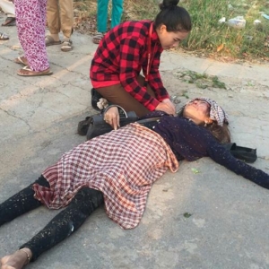 ស្ត្រីរងរគ្រោះឈ្មោះ សឿន ចន្ដា អាយុ២៥ឆ្នាំ មានទីលំនៅក្នុងភូមិពពាលខែ ឃុំដីឥដ្ឋ ស្រុកកៀនស្វាយ ជិះម៉ូតូហុងដាC125 ពណ៏ខ្មៅ ពាក់ស្លាកលេខ ភ្នំពេញ 1CG-7668 បានរងរបួសធ្ងន់ត្រូវសមត្ថកិច្ចហៅរថយន្តសង្គ្រោះបន្ទាន់ដឹកយកទៅសង្គ្រោះនៅមន្ទីរពេទ្យរាជធានីភ្នំពេញ ។ ចំណែករថយន្តបង្កម៉ាកHYNO ប្រភេទដឹកទំនិញ ពណ៏ស ពាក់ស្លាកលេខព្រះសីហនុ 3A-2424អ្នកបើកបរមិនស្គាល់អត្តសញ្ញាណបានរត់គេចខ្លួនបាត់ ។