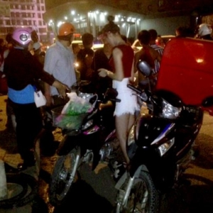 ក្នុងចំណោមម៉ូតូទាំង៣គ្រឿង មានម៉ាក Addcess ពណ៌ខៀវលាយខ្មៅ ពាក់ស្លាកលេខភ្នំពេញ1FM6288 បើកបរដោយស្ត្រីជាជនជាតិវៀតណាម (ខូចខាតច្រើនជាងគេ) ដួលអូសជាប់ពីមុខរថយន្ត និងម៉ូតូ២គ្រឿងទៀតម៉ាកស្មាស ពណ៌ខ្មៅ និងម៉ូតូស្មាសវី ខូចខាតបន្តិចបន្តួច ។