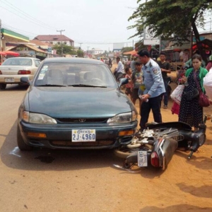 ខេត្តឧត្តរមានជ័យ ៖ ស្ត្រីវ័យចំណាស់ម្នាក់បានរងរបួសធ្ងន់ធ្ងរបាក់កំភួនជើង ខណៈជួបគ្រោះថ្នាក់ចរាចរណ៍ បង្កដោយរថយន្តបុកម៉ូតូយ៉ាងពេញទំហឹងកាលពីវេលាម៉ោង១១ព្រឹក ថ្ងៃទី៨ មីនា ២០១៧។ហេតុការណ៍នេះកើតឡើងនៅតាមបណ្តោយផ្លូវជាតិលេខ៦៧B ស្ថិតក្នុងភូមិអូរចិញ្ចៀន ឃុំអន្លង់វែង ស្រុកអន្លង់វែង ខេត្តឧត្ដរមានជ័យ។