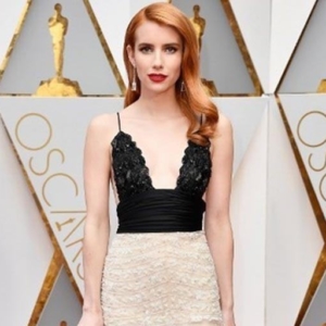 ៨-នាងEmma Robertsរំលេចដោយសំពត់ក្បាច់ផ្កាពណ៌ស ។