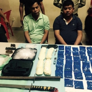 ខេត្ដបន្ទាយមានជ័យ ៖ ប្រតិបត្តិការបង្ក្រាបគ្រឿងញៀន១ឈុត ត្រូវបានកម្លាំងនគរបាលនៃមន្ទីរប្រយុទ្ធប្រឆាំងគ្រឿងញៀន សហការជាមួយកម្លាំងជំនាញ និងកម្លាំងនគរបាលក្រុងប៉ោយប៉ែត នៅវេលាម៉ោង១២និង១៥នាទីថ្ងៃត្រង់ ថ្ងៃទី៩ មីនា បានចាប់ឈ្មួញជួញដូរគ្រឿងញៀនទ្រង់ទ្រាយធំមួយ នៅចំណុចផ្លូវលំ ក្រោយស្ថានីយប្រេងឥន្ធនៈតូតាល់ ស្ថិតក្នុងភូមិសូភី សង្កាត់កំពង់ស្វាយ ក្រុងសិរីសោភ័ណ ដោយចាប់ឃាត់ខ្លួនបានជនសង្ស័យ២នាក់ ដកហូតបានវត្ថុតាងគ្រឿងញៀនមួយចំនួនធំ សរុបទាំងគ្រឿងញៀនប្រភេទម៉ាទឹកកក និងថ្នាំញៀនយ៉ាម៉ា មានទម្ងន់រួមចំនួន១.៧៧៥,៣៣ក្រាម ។