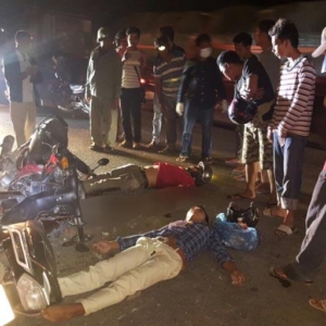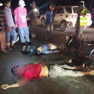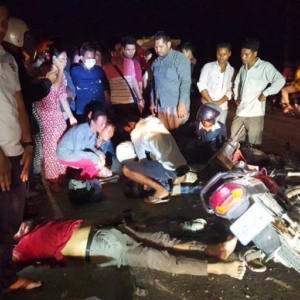 រាជធានីភ្នំពេញ ៖ ម៉ូតូសេ១២៥ ចំនួន២គ្រឿង ខណៈដែលមានមួយគ្រឿងបើកបរវ៉ាជែងខ្វះការប្រុងប្រយ័ត្នលឿនជ្រុលទៅបុកម៉ូតូមួយគ្រឿងទៀត នៅបំណែកផ្លូវម្ខាងដែលបើកច្រាសទិសគ្នា បណ្តាលឲ្យមនុស្ស២នាក់ស្លាប់ភ្លាមៗនៅនឹងកន្លែង ចំណែកម្នាក់ទៀតរងរបួសធ្ងន់ធ្ងរ។ កាលពីវេលាម៉ោង១៨និង៤០នាទីយប់ ថ្ងៃទី១១ ខែមីនា ឆ្នាំ២០១៧ ស្ថិតនៅលើកំណាត់ផ្លូវជាតិលេខ៤ ខាងលិចសាលាក្តីខ្មែរក្រហម ត្រង់ចំណុចភូមិត្រពាំងទួល សង្កាត់កំបូល ខណ្ឌពោធិ៍សេនជ័យ ។