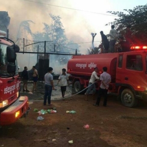 ខេត្តកំពង់ស្ពឺ ៖ ម្ចាស់រោងសិប្បកម្មឈើមួយកន្លែងដោយសារចង់ការពារឈើខ្លាចមានចោរលួចបានរងការខូចខាតទាំងស្រុង ដោយសារតែម្ចាស់រោងសិប្បកម្មបានតខ្សែភ្លើងដាក់ជុំវិញការពារក្រែងមានចោរចូលលួចឈើ បណ្តាលឱ្យឆ្លងចរន្តបង្កជាអណ្តាតភ្លើងឆាបឆេះឆ្លងរាលដាលដល់ផ្ទះអ្នកក្បែរខាងអស់២ខ្នងទៀតផងដែរ។