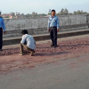 លោកវរសេនីយ៍ត្រី ឆែម ហាក់ អធិការរងទទួលផែនចរាចរណ៍សណ្តាប់ធ្នាប់ក្រុងបានឲ្យដឹងថា អ្នកបើកបររថយន្តដឹកដីមានឈ្មោះលាង មួន ភេទប្រុស អាយុ២៥ឆ្នាំ រស់នៅភូមិស្នំប្រាំពីរ ឃុំម៉ាក់ប្រាង្គ ស្រុកទឹកឈូ។ លោកបន្តទៀតថា ដោយសារតែកំពប់ដីខ្លាំងពេក សមត្ថកិច្ចបានព្រមានឲ្យកើបដីដែលកំពប់នៅលើស្ពាន និងតាមផ្លូវជាតិឲ្យអស់ និងបានបាញ់ទឹកលាងឲ្យស្អាត ដើម្បីកុំឲ្យប៉ះពាល់ការហុយនៅពេលរថយន្តគ្រប់ប្រភេទបើកឈាន់ពីលើ ឬពេលមានភ្លៀងកក់ខែ វាអាចដីដែលកំពប់នេះហូររអឹលដល់អ្នកធ្វើដំណើរតាមយានយន្តគ្រប់ប្រភេទផងដែរ។