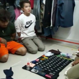 ជនសង្ស័យដែលឃាត់ខ្លួន ១-ឈ្មោះ មាស សុភា ភេទប្រុស អាយុ១៩ឆ្នាំ មានមុខរបរសន្តិសុខដឺប្រេស និង២-ឈ្មោះ ឯក សំណាង ភេទស្រី អាយុ១៧ឆ្នាំ មុខបរបមិនពិតប្រាកដ ស្នាក់នៅកន្លែងឃាត់ខ្លួនខាងលើ។